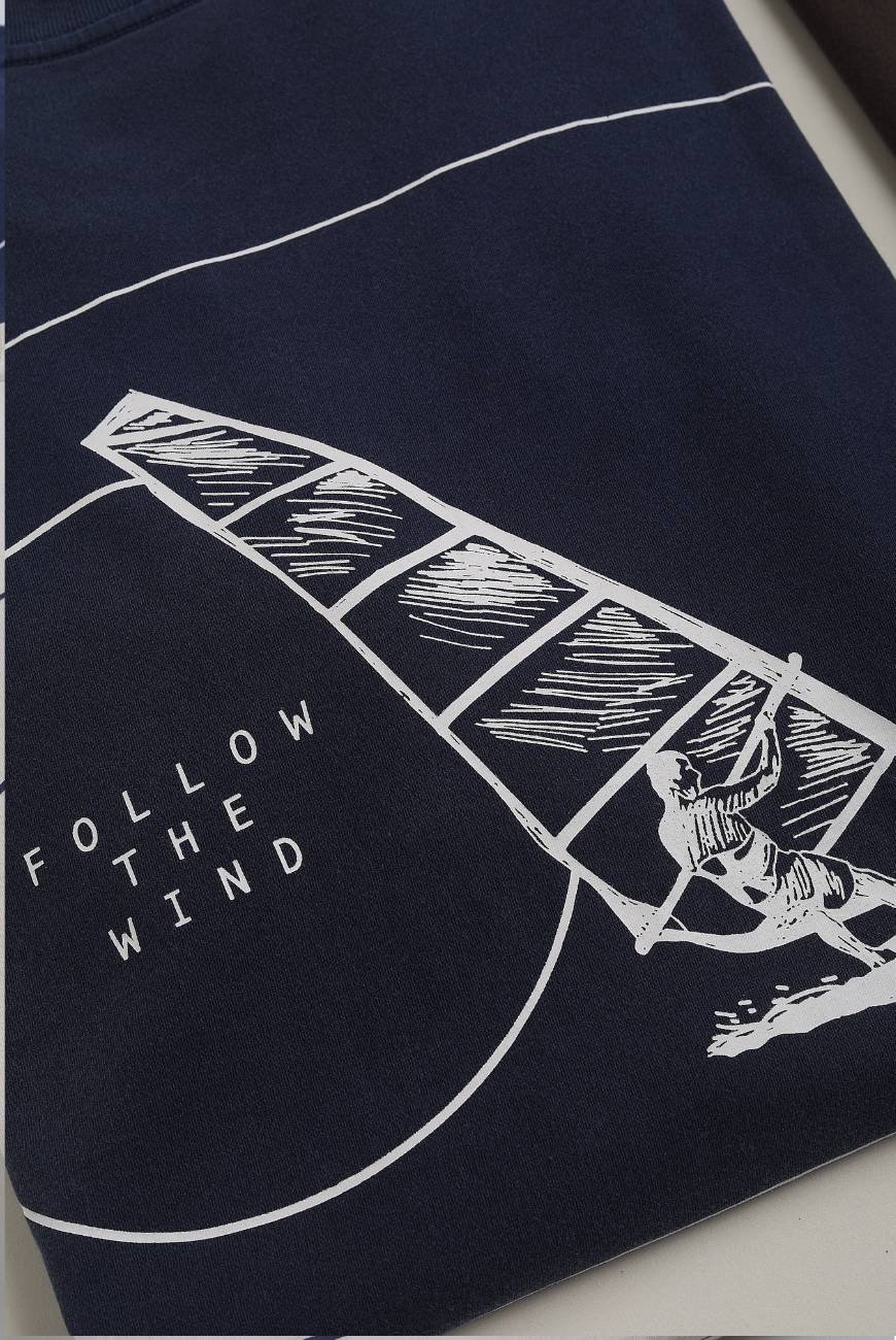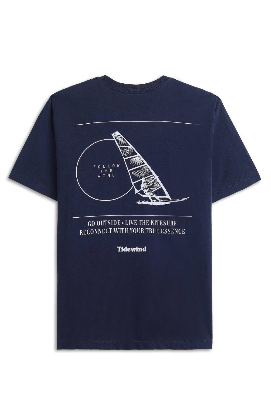 A T-Shirt Vela Tidewind Azul conta com design exclusivo inspirado nas velas de kitesurf, trazendo minimalismo e um toque de cor marcante. Feita em algodão premium, oferece sensação de frescor e liberdade para todas as ocasiões, de caminhadas na praia ao pós-treino.